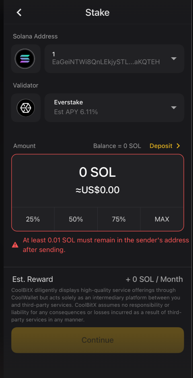 Estimated APY: The APY displayed in CoolWallet is an estimated annual return based on historical performance data. Since Polkadot rewards fluctuate every 24 hours (per Era) based on validator performance (Era Points), the App provides a smoothed average to offer a more realistic expectation of long-term returns over a one-year period.